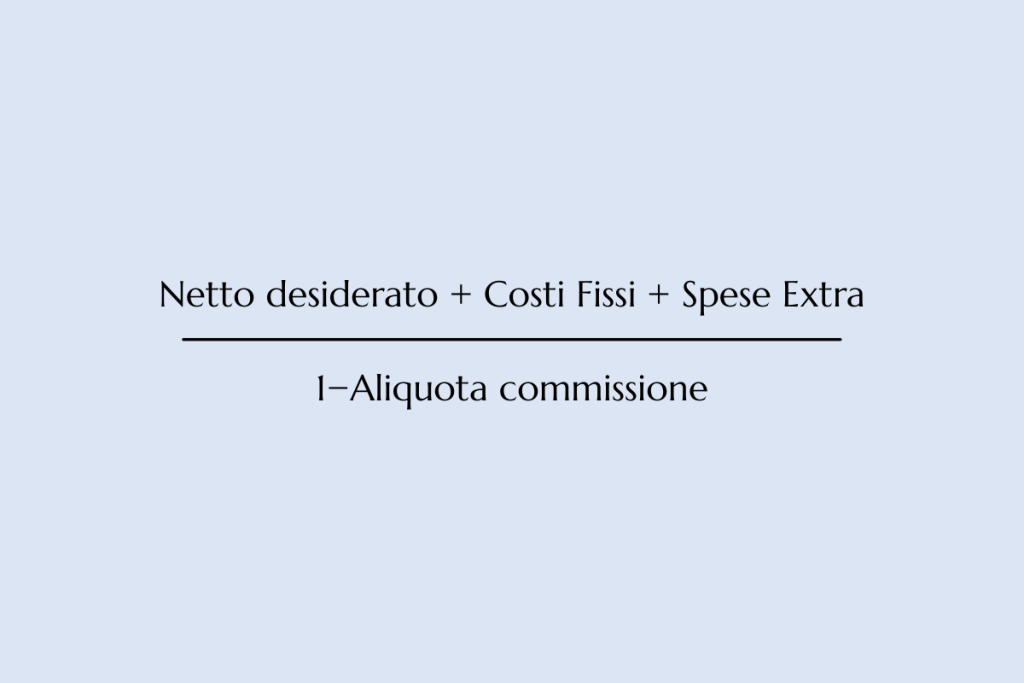Non basta “alzare un po’ le tariffe”. Devi calcolare con precisione il prezzo netto che vuoi incassare e applicare la formula corretta, tenendo conto della commissione del 15,5% (più IVA se applicabile). Solo così puoi garantire margini stabili.